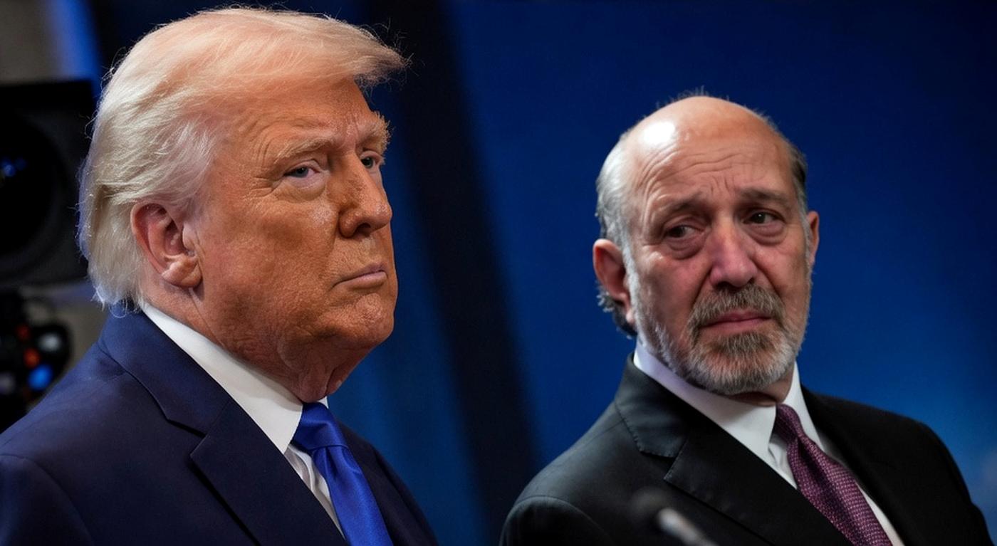 two men in suits at a formal event, serious expressions