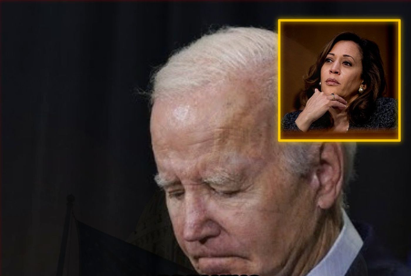 Joe Biden with head bowed, Kamala Harris inset, breaking new