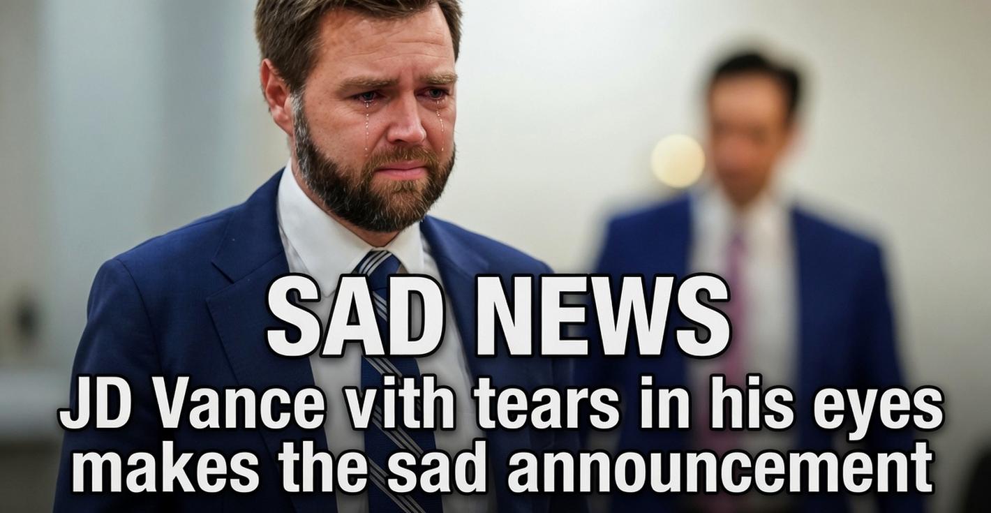 JD Vance crying with tears streaming down his face, wearing a blue suit and striped tie