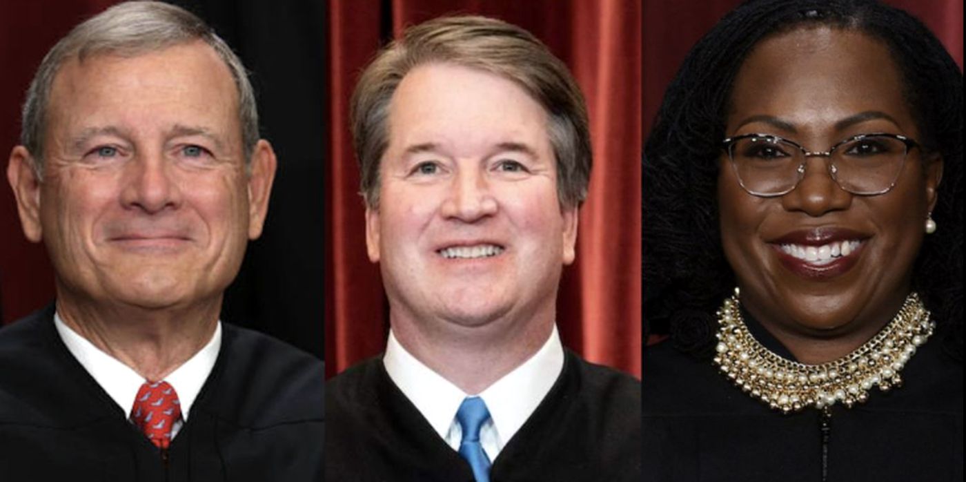 Three Supreme Court justices in judicial robes with text below reading 'HUGE! Supreme